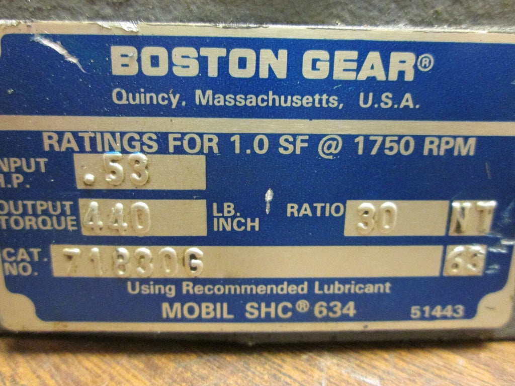 Boston Gear Reducer 71830G Ratio 30:1 0.53 HP IN 440 LB-IN Torque Out