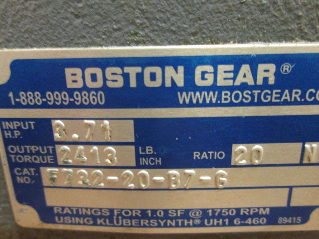 Boston Gear Reducer F732-20-B7-G Ratio 20:1 3.71 HP In 2413 In LB Torque Out
