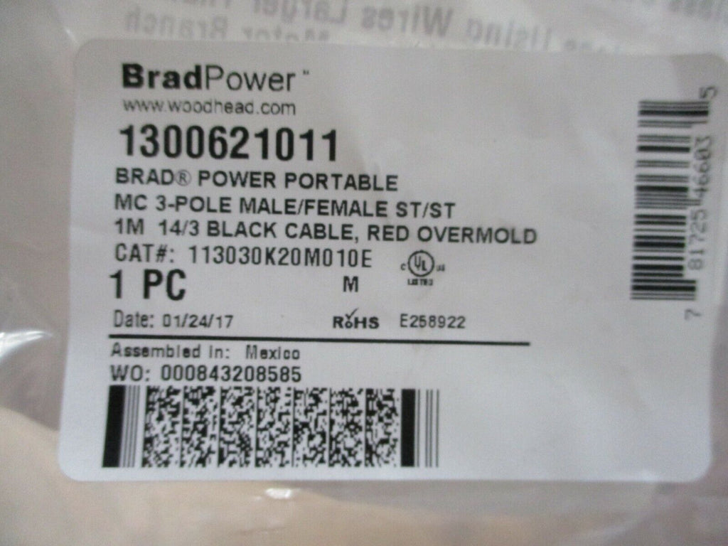 Brad Power Portable Double-Ended Cord Set Part #: 1300621011 CAT#: 113030K20M010E 3-Pole14/3 CableNew SurplusLOC 13E2-10- Part #: 1300621011