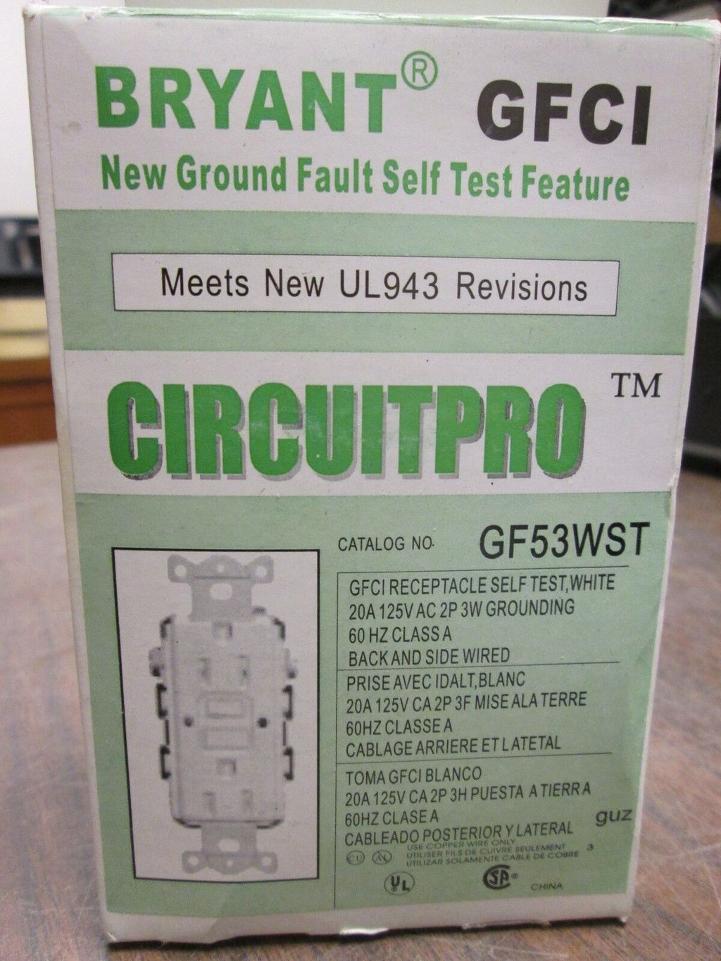 Bryant Circuitpro GFCI Duplex Receptacle GF53WST 20A 125V 2P 3...