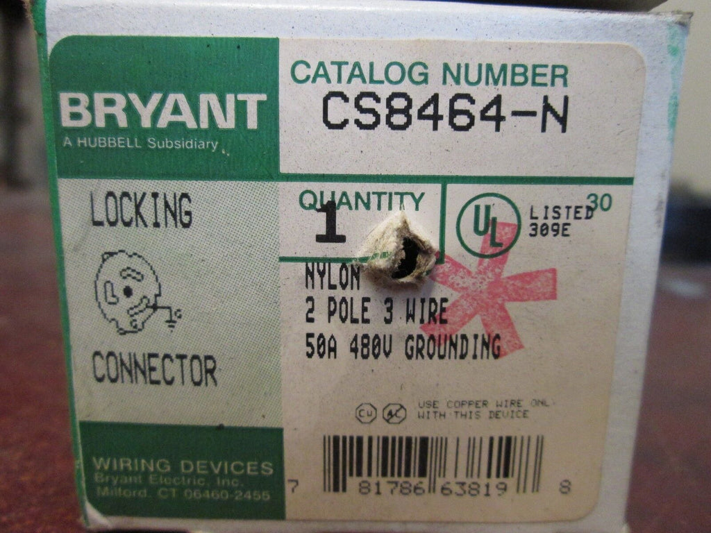 Bryant Nylon Locking Connector CS8464-N 2P 3W 50A 480V New Surplus
