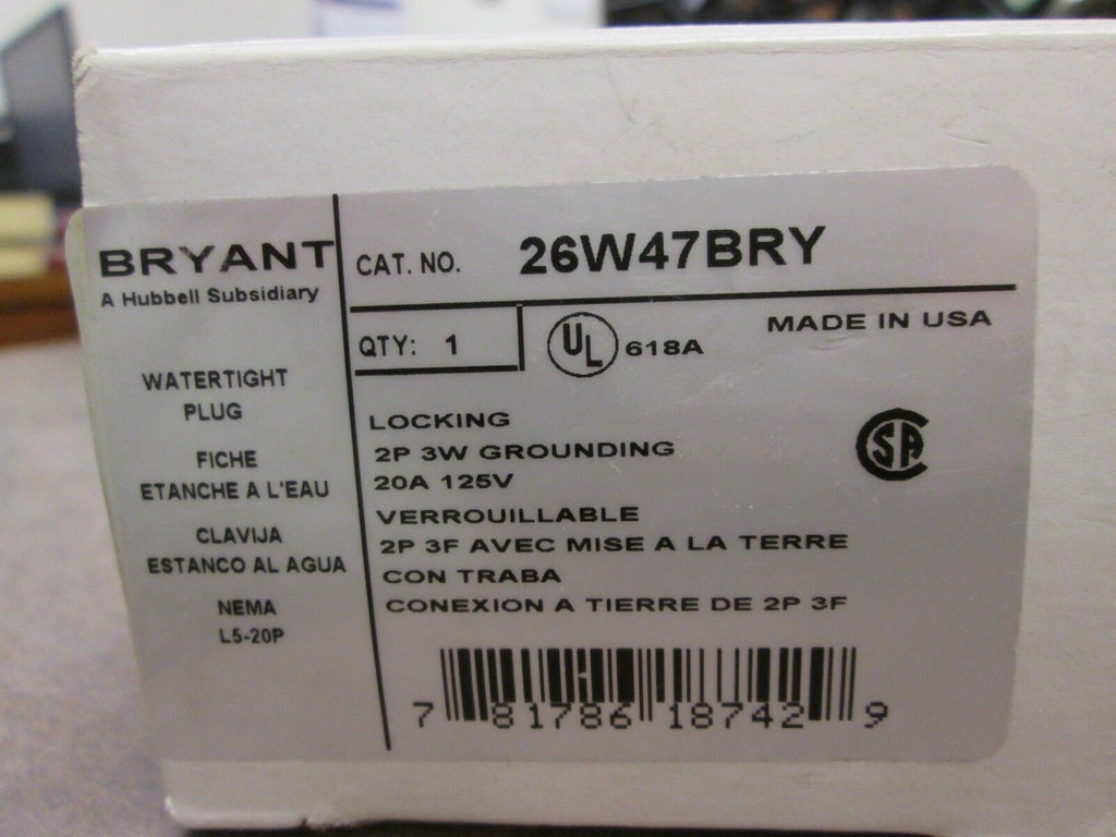 Bryant Watertight Plug 26W47BRY 20A 125V 2P 3W New Surplus_x00...