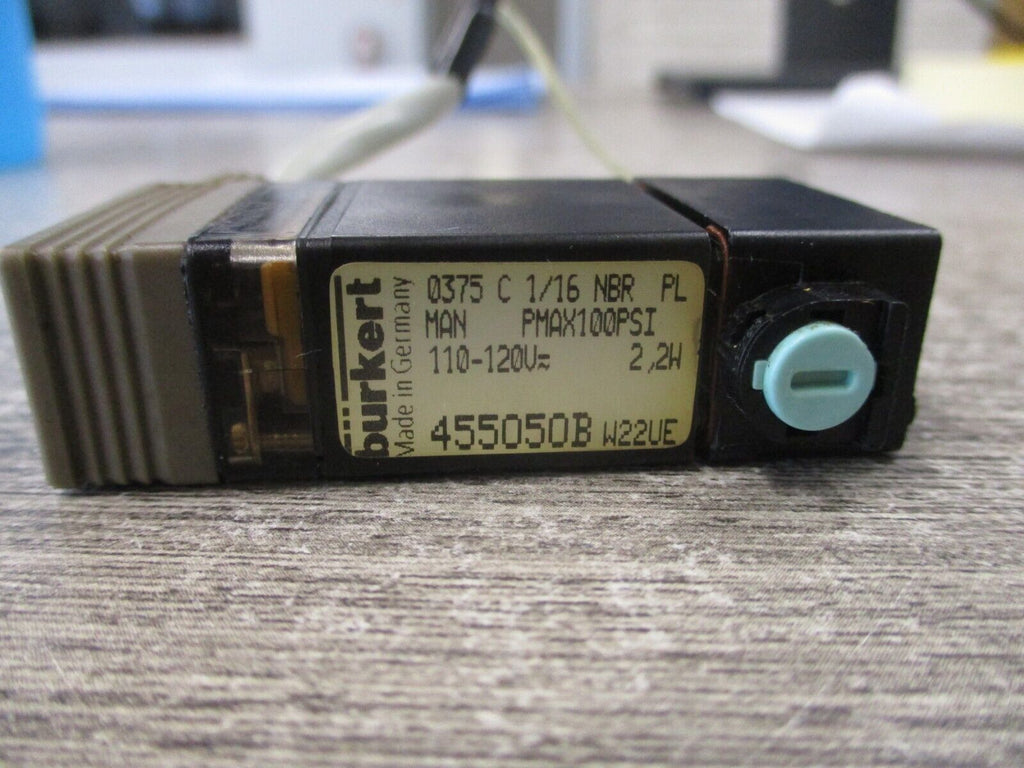Burkert Solenoid Valve 0375 C 1/16 NBR PL 100 PSI 110-120V Coil Used