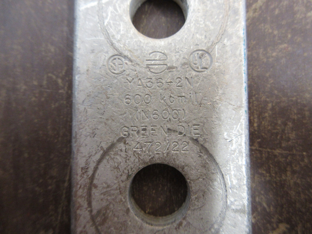 Burndy Crimp Lug Part #: YA36-2N 600 Kcmil 2-Hole *No Box* New Surplus Loc: 57F5-7 / AB11-8734 / CR3B5 / CR6B6