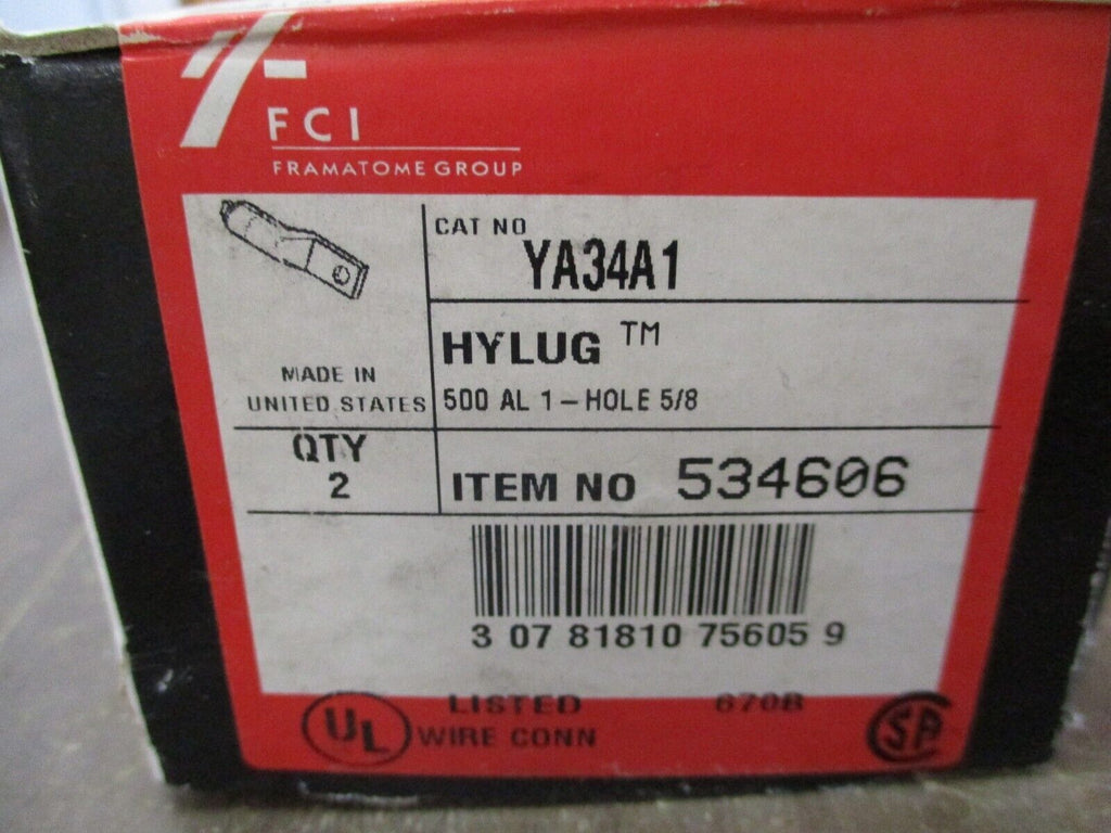 Burndy Hylug Crimp Lug YA34A1 500 AL 1-Hole 5/8" *Box of 2* Ne...