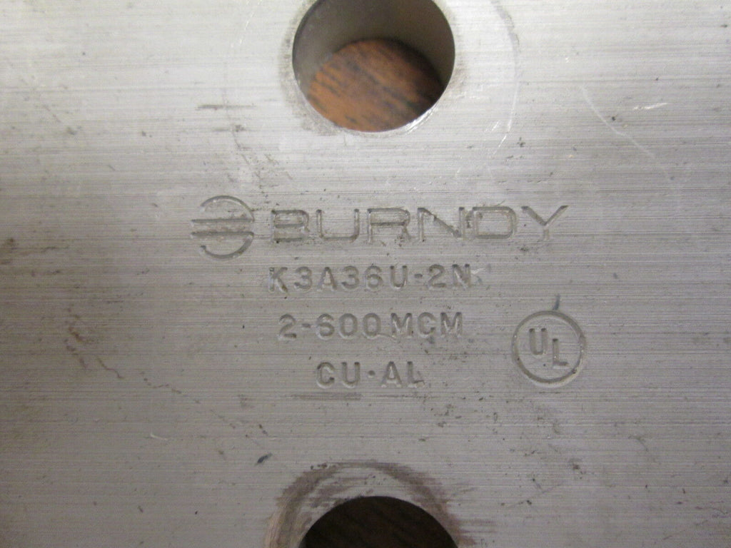 Burndy Lug K3A36U-2N 600MCM Used Condition: UsedBrand: BurndyMPN: K3A36U-2N Burndy Lug K3A36U-2N 600MCM Used Burndy Lug Part #: K3A36U-2N 600MCM UsedLOC 4D4-43 Burndy Lug Part #: K3A36U-2N 600MCM Uséd LOC 4D4-43