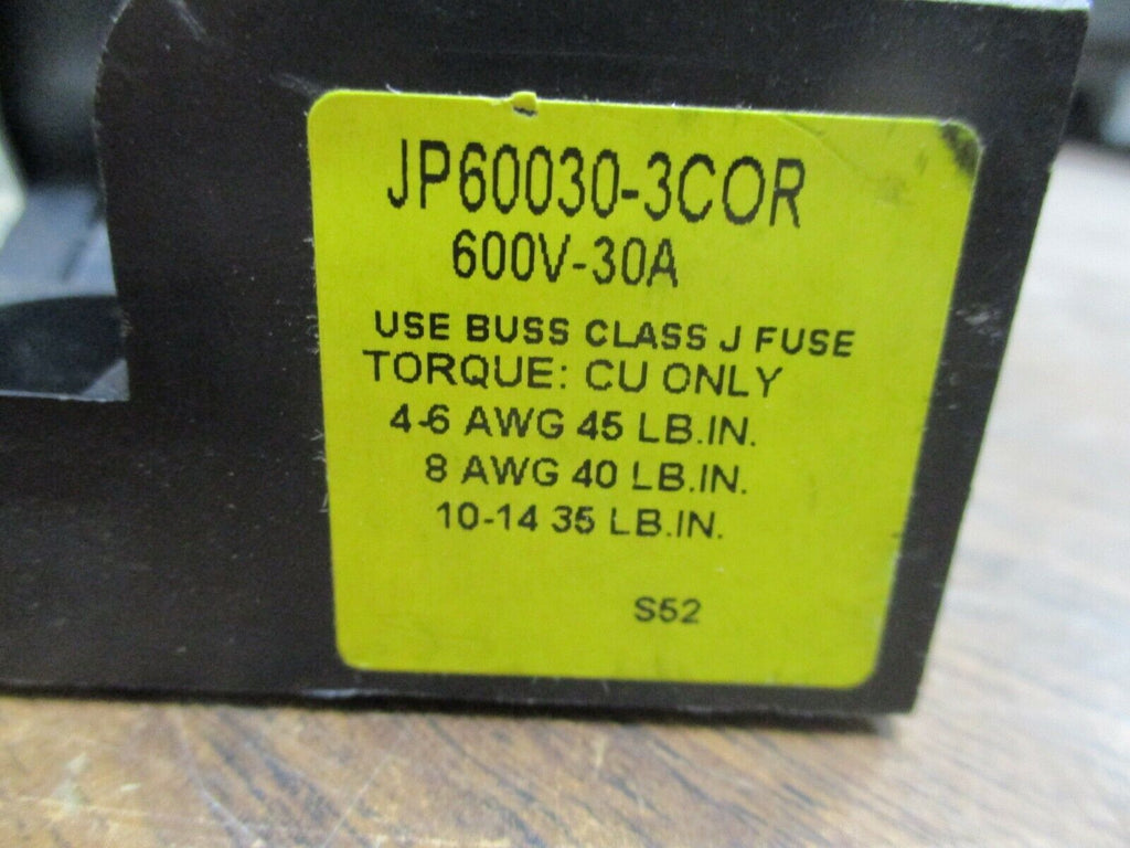 Buss Class J Pyramid Fuse Holder JP60030-3COR 30A 600V 3P Used...