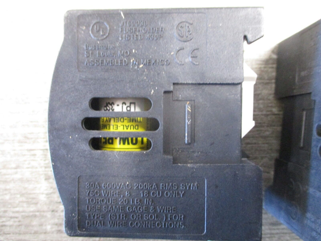 Buss Fuse Holder JT60030 30A 600V 1P W/3A Fuse *Lot of 2* Used