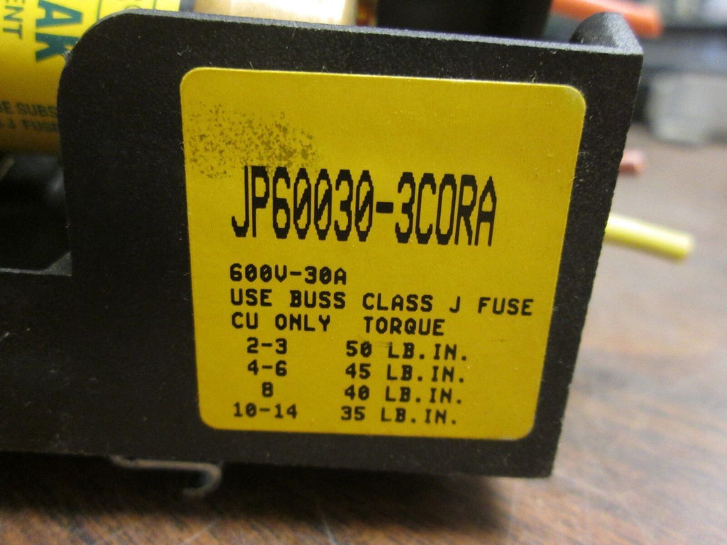 Buss Fuseblock JP60030-3CORA 30A 600V 3P Class J Pyramid w/ 10A Fuses Used