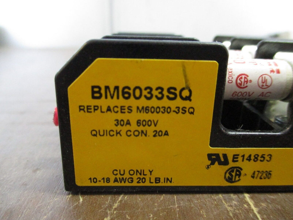 Buss Fuseholder BM6033SQ 30A 600V 3P w/ (3) 30A Fuses Used