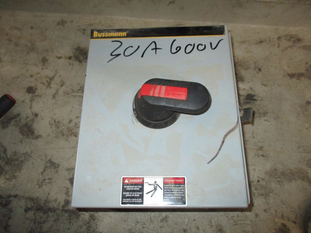Bussmann Enclosed Disconnect Switch ENF301-3PB6 30A 600V 3P 60Hz Used_x000D_ Condition: UsedCurrent Rating: 16-30 AMaximum Amperage: 30 AType: DisconnectorMPN: ENF301-3PB6Brand: BussmannVoltage: 551-600 V Bussmann Enclosed Disconnect Switch ENF301-3PB6 30A 600V 3P 60Hz Used Bussmann Enclosed Disconnect Switch Part # ENF301-3PB6 30A 600V 3P 60Hz UsedLOC AB9F1-23 Bussmann Enclosed Disconnect Switch Part # ENF301-3PB6 30A 600V 3P 60Hz Uséd LOC AB9F1-23