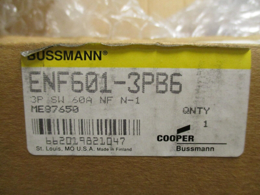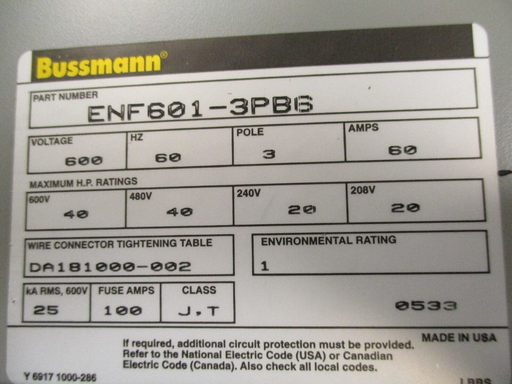 Bussmann Enclosed Switch ENF601-3PB6 60A 3P New Surplus Condit...