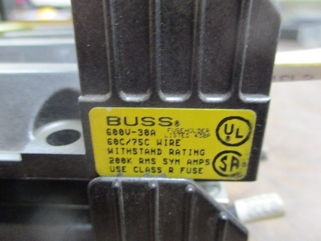 Bussmann Fuse Block, R60030-2CR, Lot of 4, 30A, 600V, 2P, Used Condition: UsedMPN: R60030-2CRBrand: BussmannModel: Fuse Block Bussmann Fuse Block, R60030-2CR, Lot of 4, 30A, 600V, 2P, Used Bussmann Fuse Block Part #: R60030-2CR30A 600V 2P *Lot of 4* UsedLOC 12H4-13 Bussmann Fuse Block Part #: R60030-2CR 30A 600V 2P *Lot of 4* Uséd LOC 12H4-13