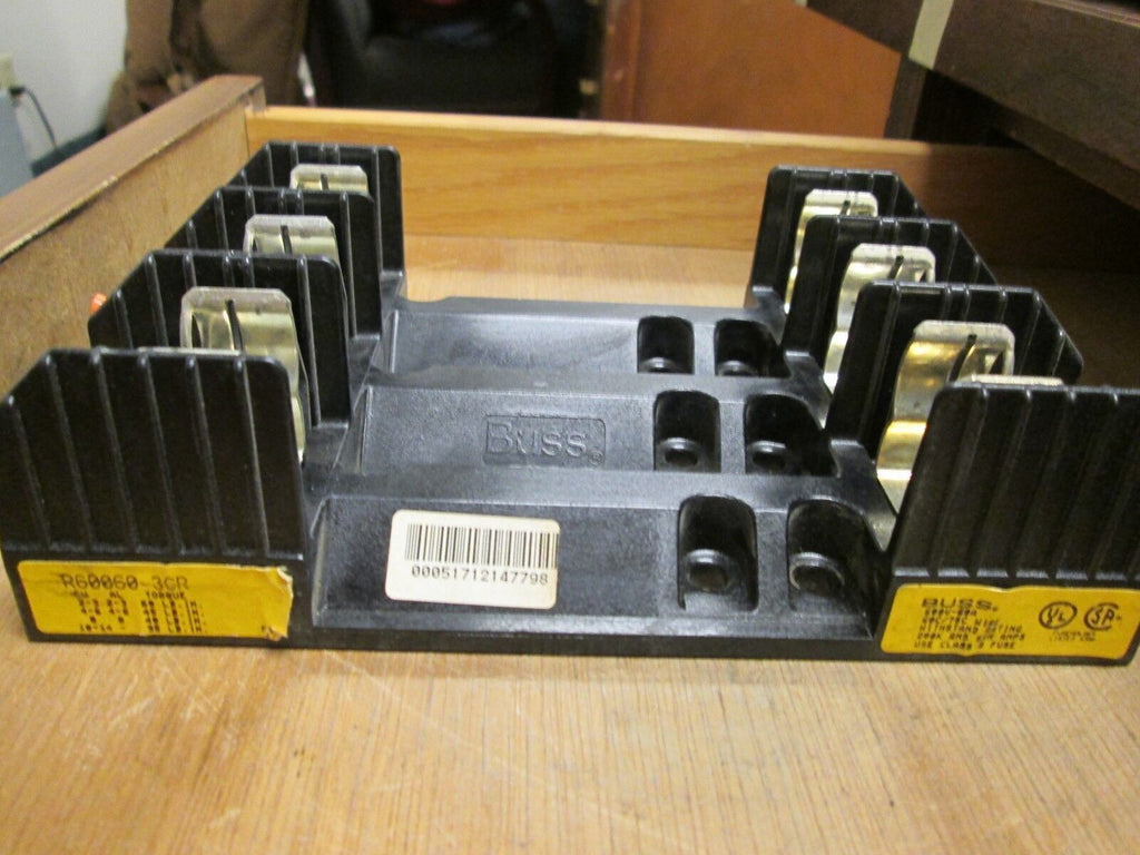 Bussmann Fuse Block R60060-3CR 60A 600V 3P Lot of 2 Used Condition: UsedBrand: BussmannColor: BlackMPN: R60060-3CRType: Fuse Block Bussmann Fuse Block R60060-3CR 60A 600V 3P Lot of 2 Used Bussmann Fuse Block R60060-3CR 60A 600V 3P Lot of 2 UsedLOC# 11K1-3 Bussmann Fuse Block R60060-3CR 60A 600V 3P Lot of 2 Uséd LOC# 11K1-3