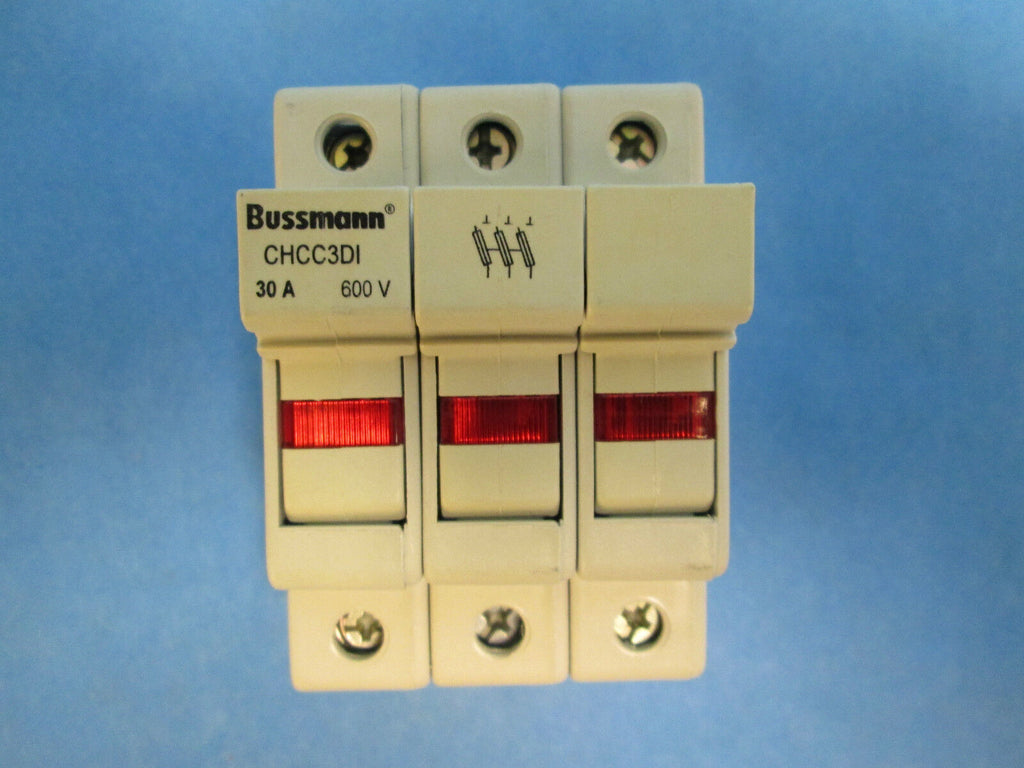Bussmann Fuse Holder CHCC3D1 30A 600V Condition: UsedBrand: CNJ SurplusCountry of Manufacture: SpainMPN: CHCC3D1Manufacturer: Bussmann Bussmann Fuse Holder CHCC3D1 30A 600V Bussmann Fuse Holder Part # CHCC3D1 30A 600VUsed Loc 5B5-3 Bussmann Fuse Holder Part # CHCC3D1 30A 600V Uséd Loc 5B5-3