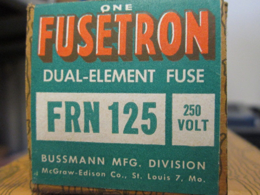 Bussmann Fusetron Fuse FRN 125 250V 125A *Lot of 5* New Surplus Condition: New – Open boxBrand: BussmannModel: Fusetron FuseMPN: FRN 125 Bussmann Fusetron Fuse FRN 125 250V 125A *Lot of 5* New Surplus Bussmann Fusetron Fuse Part #: FRN 125 250V 125A *Lot of 5*New SurplusLOC 17I2-13 Bussmann Fusetron Fuse Part #: FRN 125 250V 125A *Lot of 5* New Surplus LOC 17I2-13