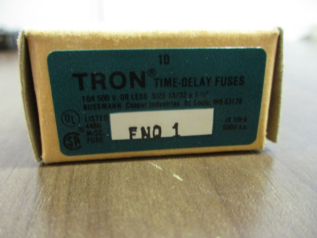 Bussmann Tron Fuse FNQ-1 1A 500V *Box of 10* New Surplus Bussmann Tron Fuse Model#: FNQ-1 1A 500V *Box of 10* New Surplus loc: 11B5-8 Bussmann Tron Fuse Model#: FNQ-1 1A 500V *Box of 10* New Surplus loc: 11B5-8