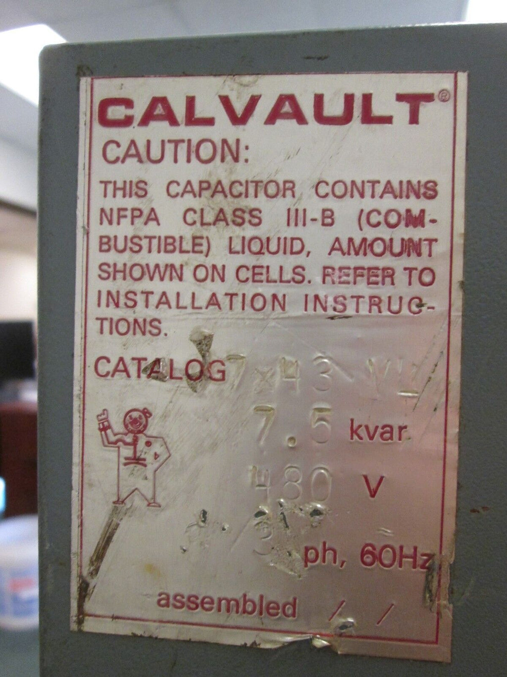 Calvault Calmount Capacitor 7x43 VL 7.5KVAR 480V 3ph 60Hz Used...