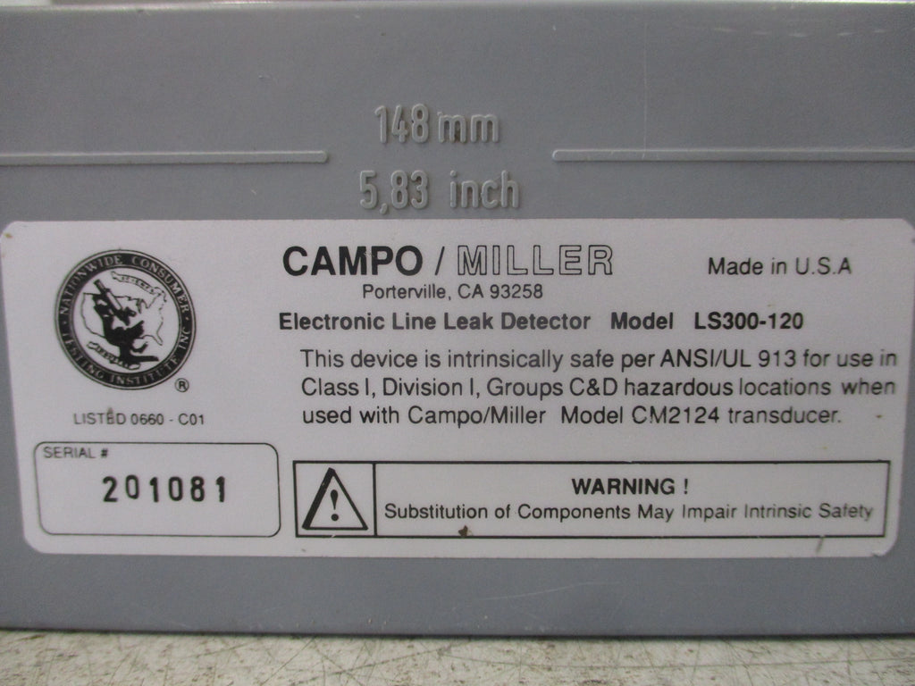 Campo Miller Line Leak Detector LS300-120 Used LOC 58C5-17
