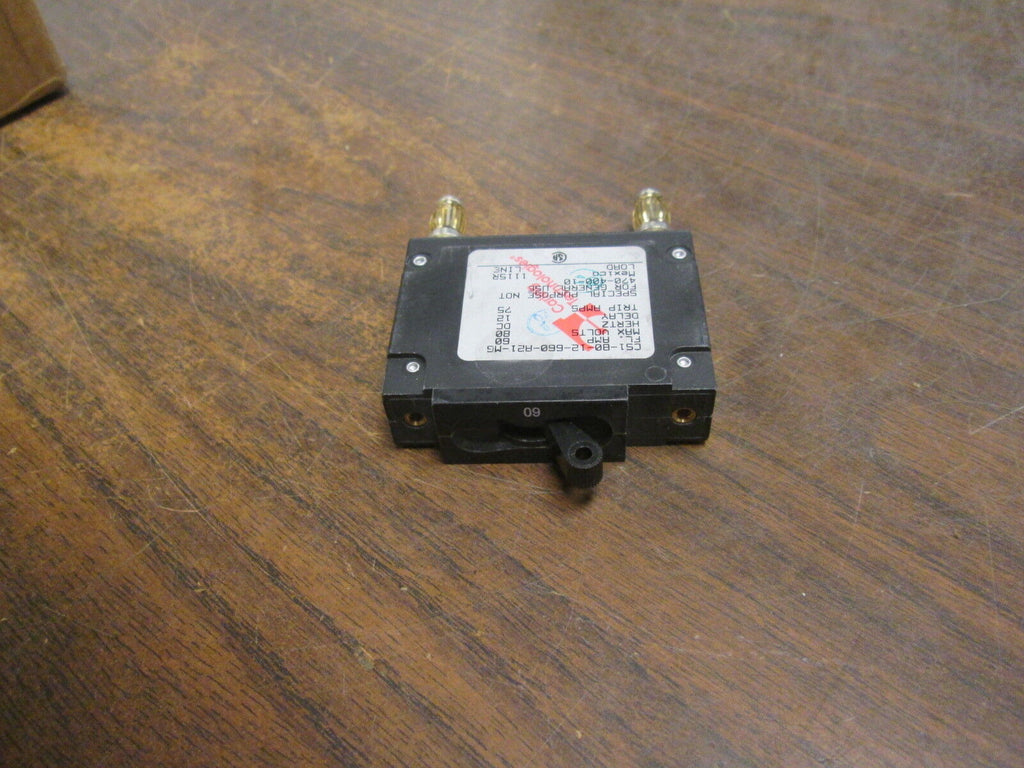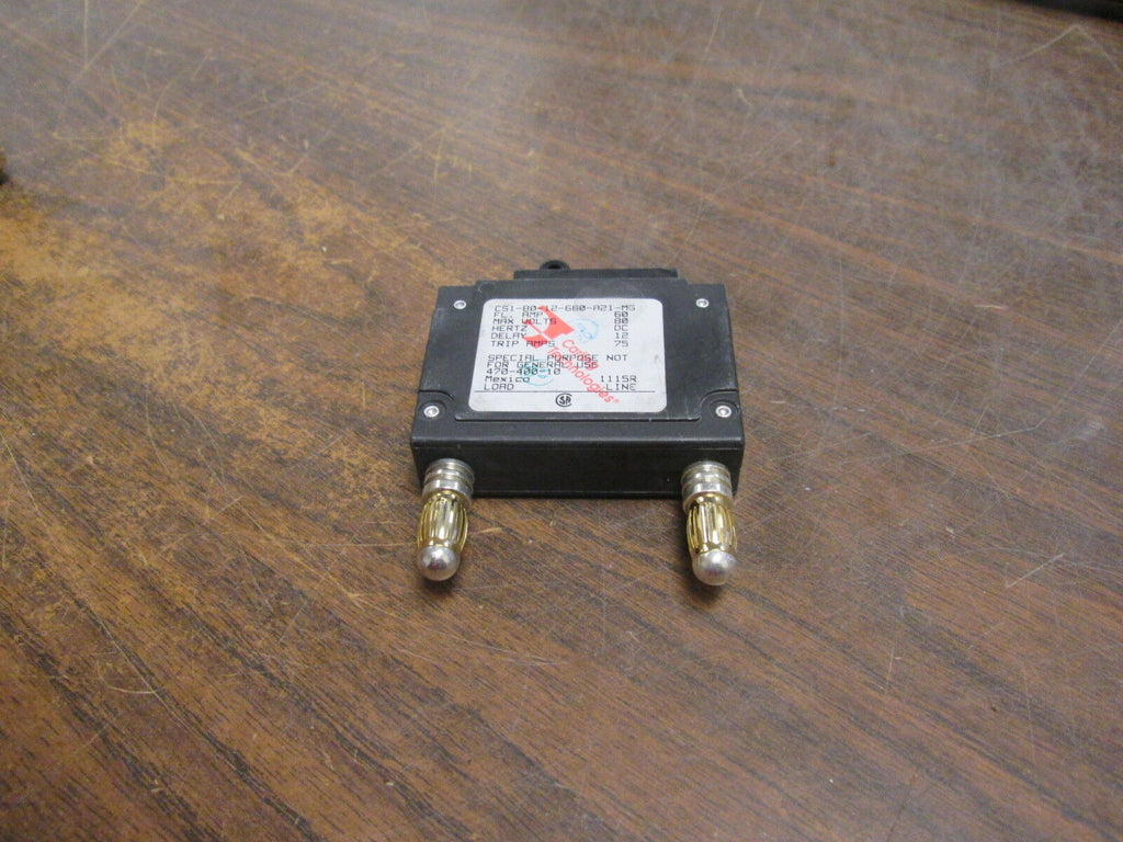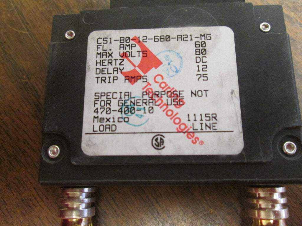 Carling Technologies DC Circuit Breaker CS1-B0-12-660-A21-MG 60A 80VDC 1P Used