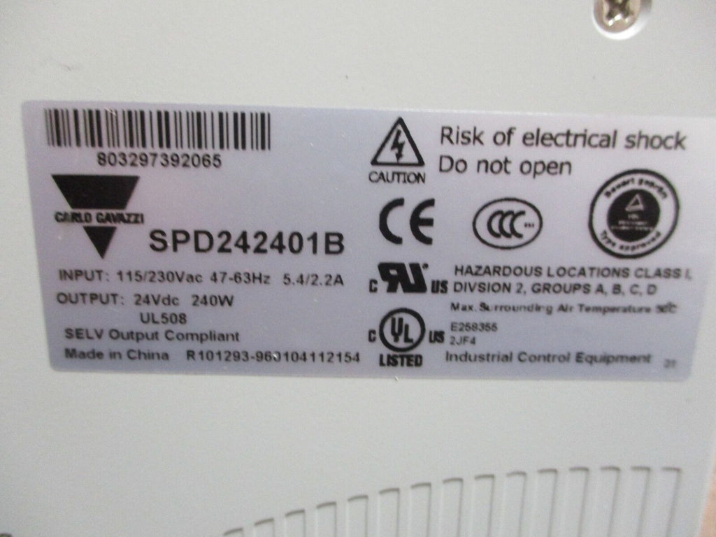 Carlo Gavazzi AC/DC Converter SPD242401B Input: 115/230VAC 47-63Hz 5.4/2.2A Used Condition: UsedBrand: Carlo GavazziMPN: SPD242401B Carlo Gavazzi AC/DC Converter SPD242401B Input: 115/230VAC 47-63Hz 5.4/2.2A Used Carlo Gavazzi AC/DC Converter Part #: SPD242401B Input: 115/230VAC 47-63Hz 5.4/2.2A Output:24VDC240WUsedLOC 4G5-32 Carlo Gavazzi AC/DC Converter Part #: SPD242401B Input: 115/230VAC 47-63Hz 5.4/2.2A Output: 24VDC 240W Uséd LOC 4G5-32