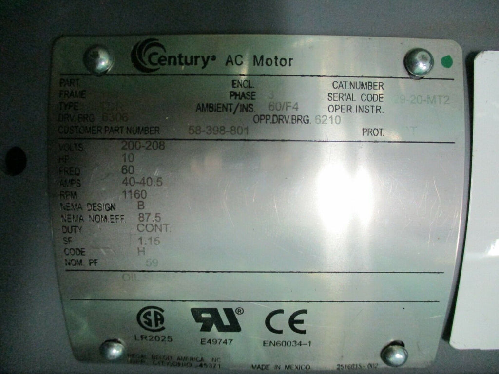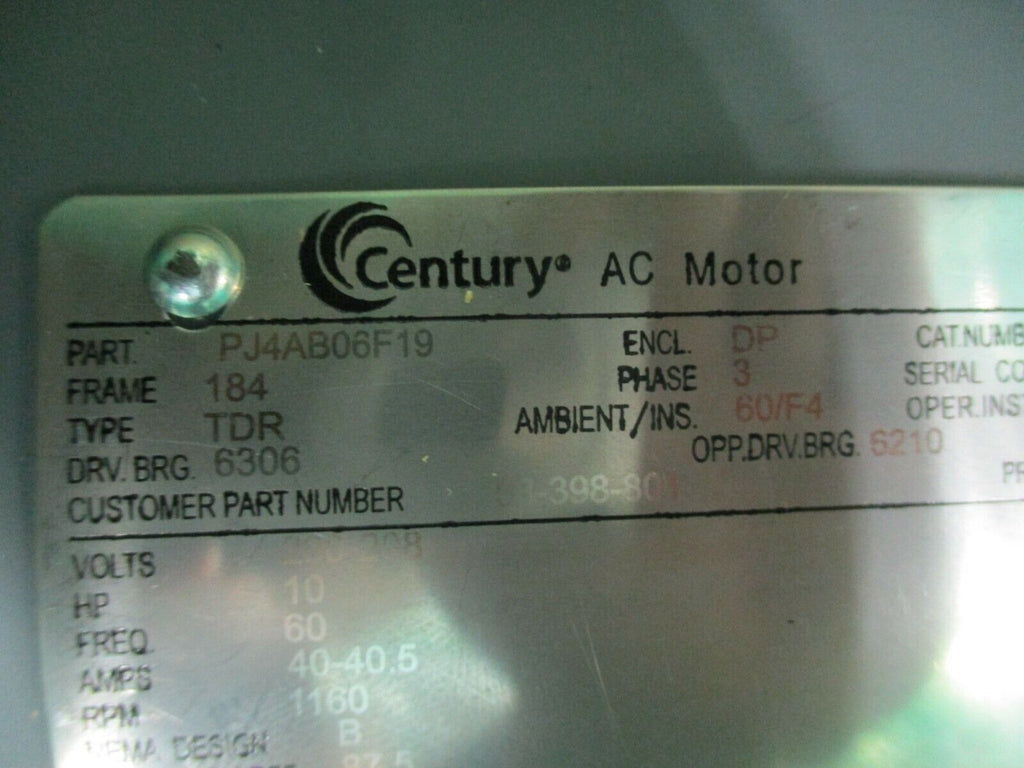 Century AC Motor PJ4AB06F19 10HP 1200RPM 184 Frame DP Enclosure New Surplus