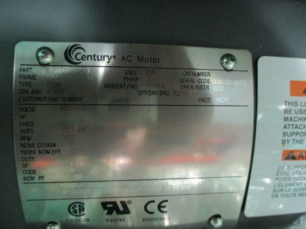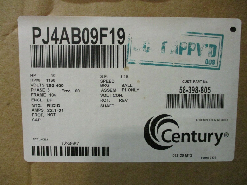Century AC Motor PJ4AB09F19 10HP 1200RPM 184 Frame DP Enclosure New Surplus