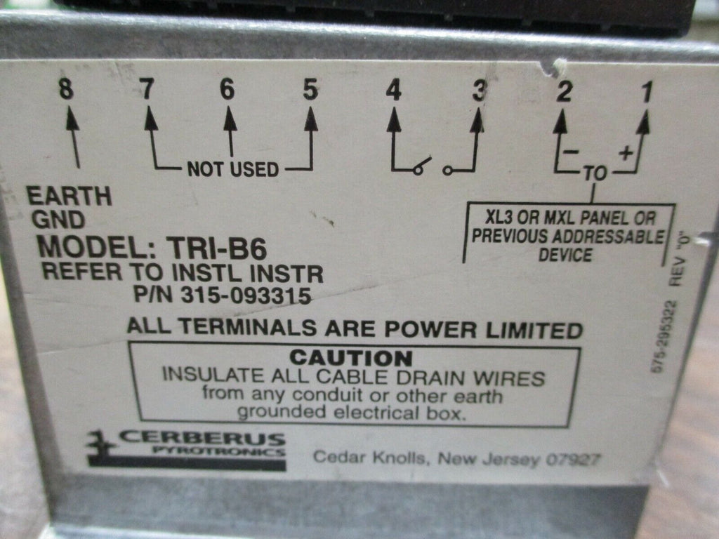 Cerbreus TRI-B6 Intelligent Interface Module 315-093315 Used Condition: UsedMPN: 315-093315Brand: Cerberus Cerbreus TRI-B6 Intelligent Interface Module 315-093315 Used Cerbreus TRI-B6 Intelligent Interface Module Part #: 315-093315 UsedLOC 18E4-38 Cerbreus TRI-B6 Intelligent Interface Module Part #: 315-093315 Uséd LOC 18E4-38