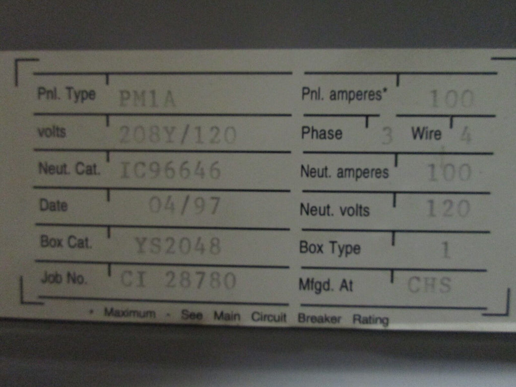 Challenger Main Breaker Breaker Panel PM1A 100A Main EHD 3100 120V 3Ph 4W Used_x000D_ Condition: UsedBrand: ChallengerModel: Main Breaker Breaker Pan
