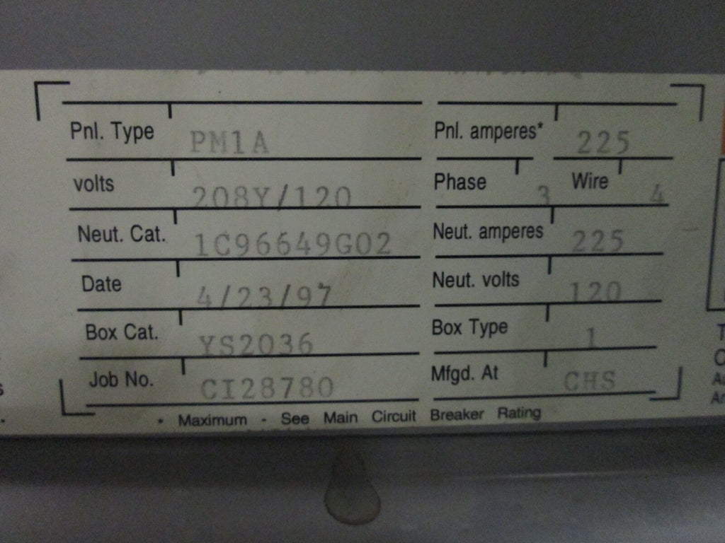 Challenger Main Circuit Breaker Panel PM1A 225A Main CED3225 208Y/120V 3Ph 3W