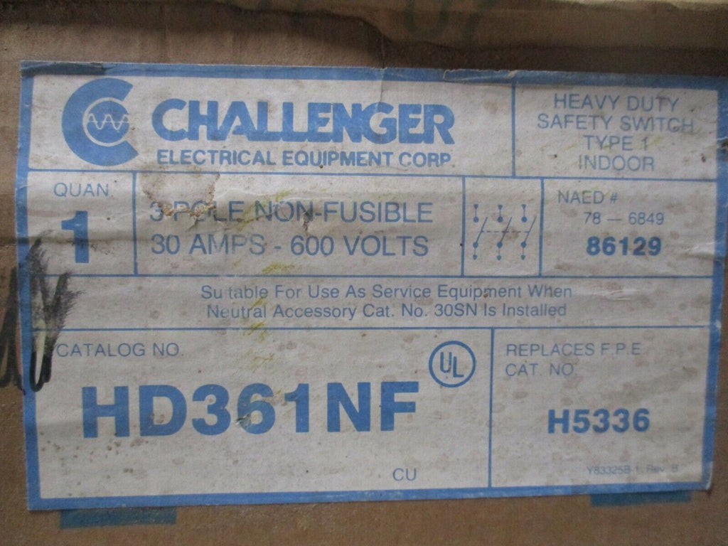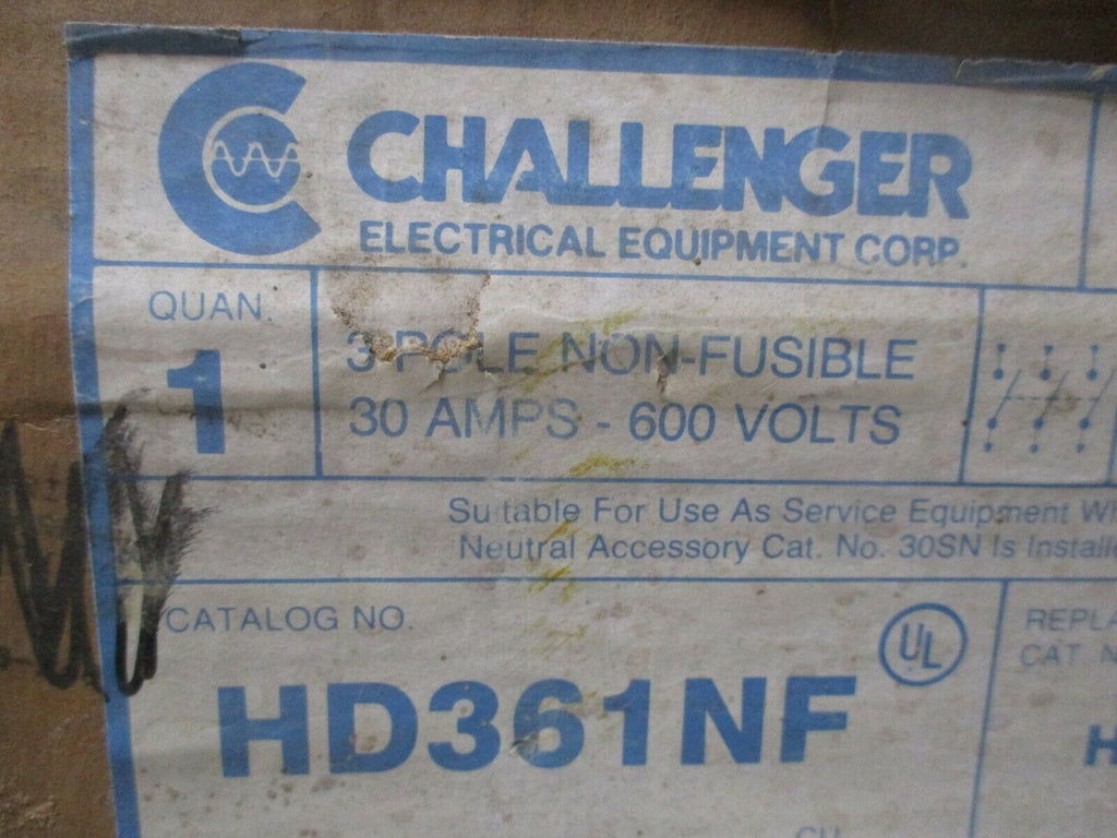 Challenger Non-Fusible Safety Switch / Disconnect HD361NF 30A 600V New Surplus