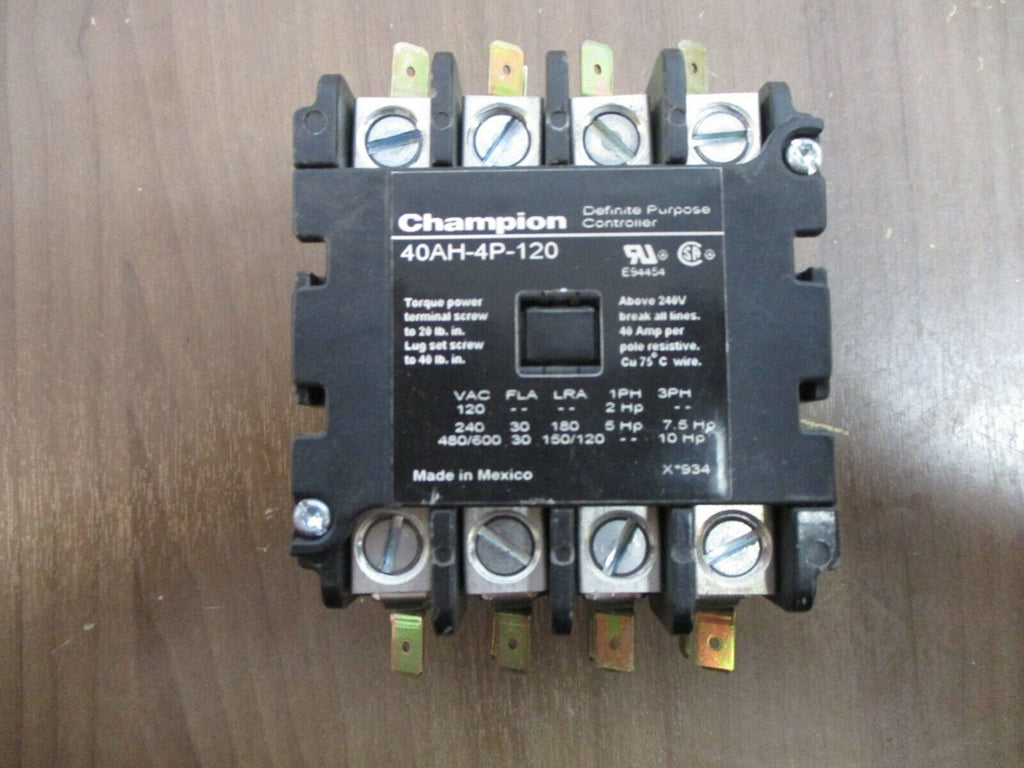 Champion Definite Purpose Contactor 40AH-4P-120 120V Coil 30A 600V Used