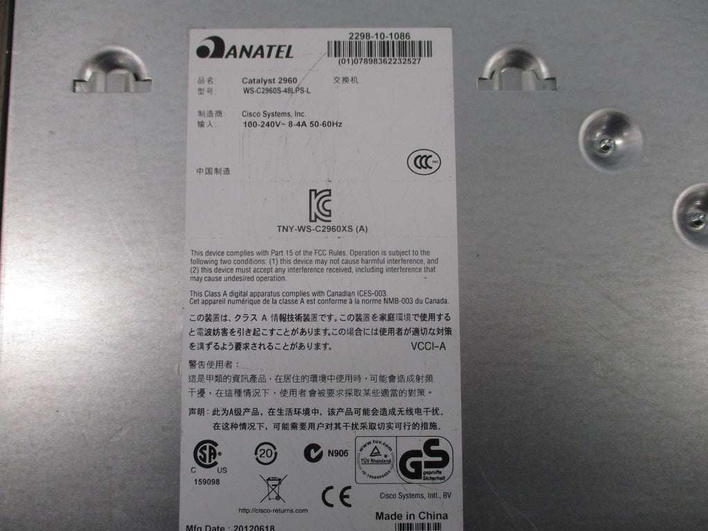 Cisco 48-Port Gigabit Switch WS-C2960S-48LPS-L V03 Used LO...