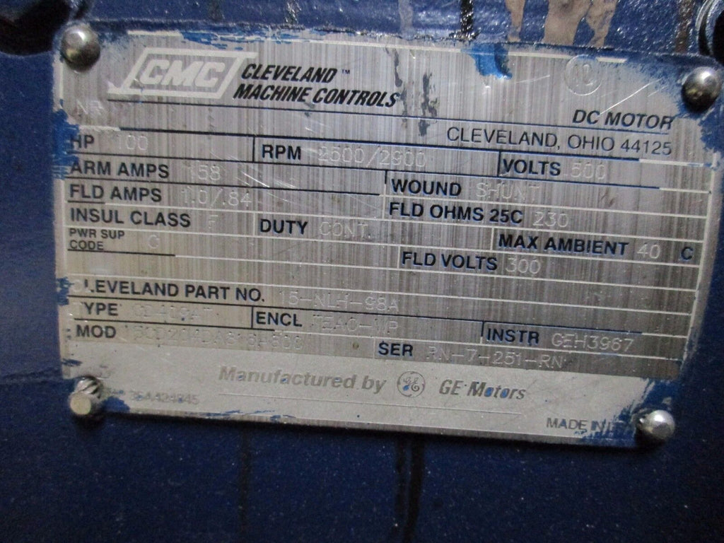CMC DC Motor w/ Blower 15-NHL-98A 100HP 2500/2900RPM 500V TEAC-WP Enclosure Used