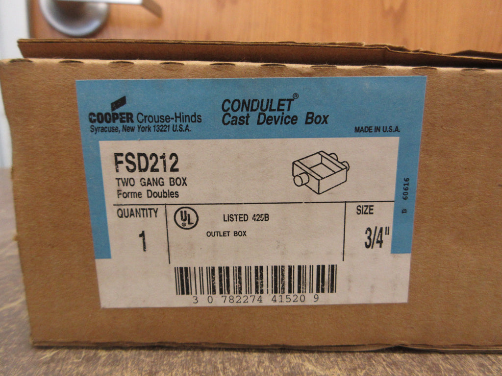 Cooper Crouse-Hinds Condulet Cast Device Box Part #: FSD212 Size: 3/4" Two-Gang New Surplus Loc: 57H5-1