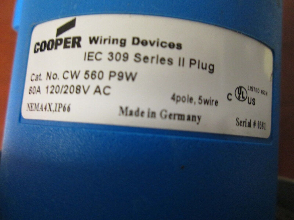 Cooper Plug CW560P9W 60A 120/208VAC 4P 5W Nema 4x Used