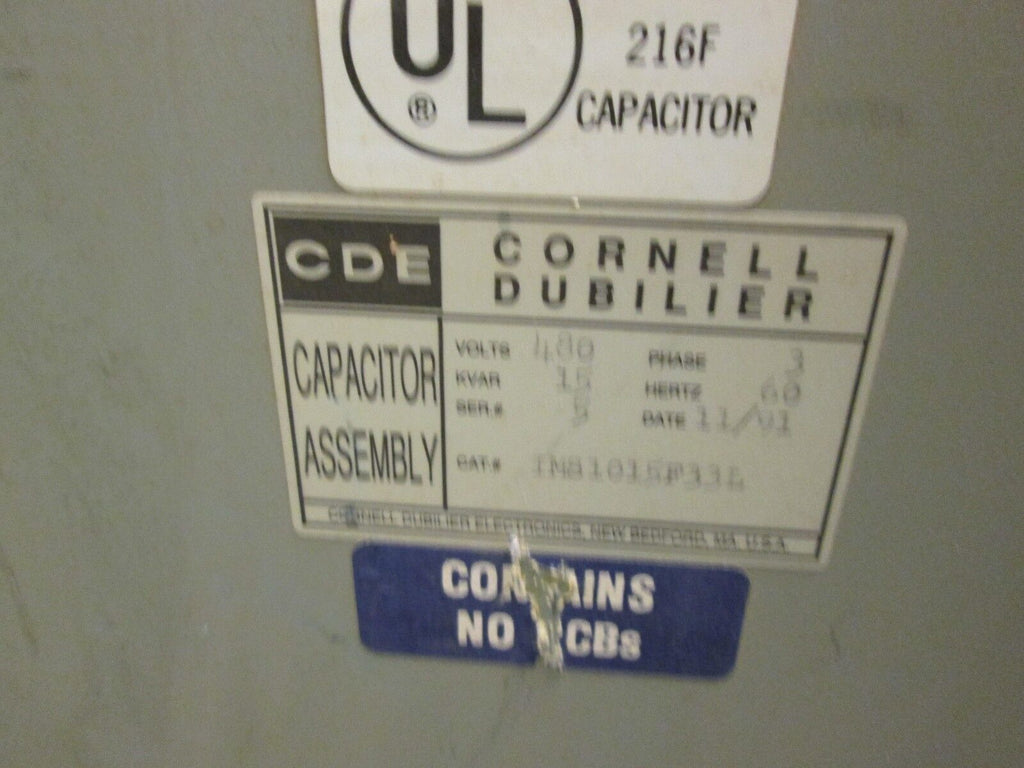 Cornell Dubilier CDE Capacitor Assembly IMS1015F33L 480V 3Ph 15KVAR 60Hz Used_x000D_ Condition: UsedBrand: Cornell DubilierModel: CDE Capacitor AssemblyMPN: IMS1015F33L Cornell Dubilier CDE Capacitor Assembly IMS1015F33L 480V 3Ph 15KVAR 60Hz Used Cornell Dubilier CDE Capacitor Assembly IMS1015F33L 480V 3Ph 15KVAR 60Hz UsedLOC# AB3B2-9; AB3J2-3 Cornell Dubilier CDE Capacitor Assembly IMS1015F33L 480V 3Ph 15KVAR 60Hz Uséd LOC# AB3B2-9; AB3J2-3