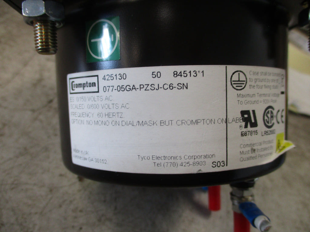Crompton AC Voltmeter 077-05GA-PZSJ-C6-SN Range: 0-600V Used LOC 58H5-9