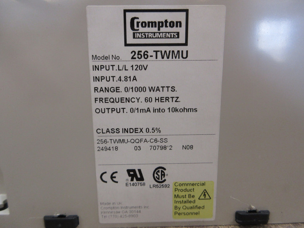 Crompton Paladin Transducer 256-TWMU-QQFA-C6-SS 120V 0.5A 60Hz Used