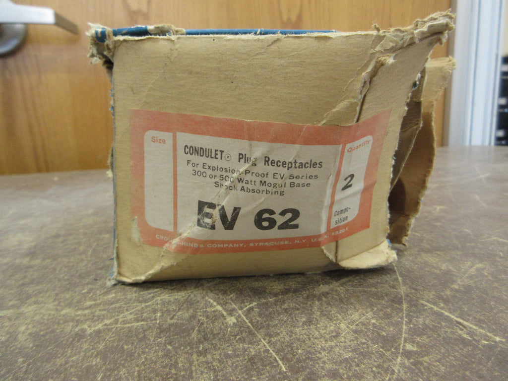 Crouse-Hinds Condulet Plug Receptacles Part #: EV 62 For Explosion Proof EV Series 300/500W Mogul Base *Box of 2* *Damaged Box* New Surplus Loc: 57H4-16