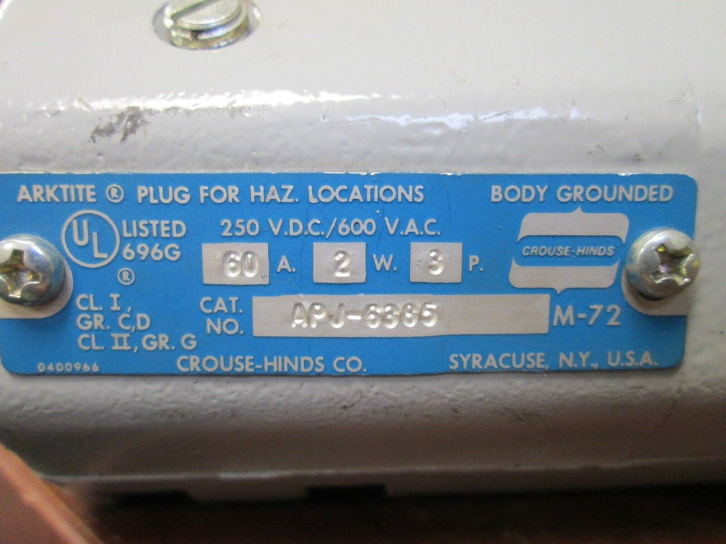 Crouse-Hinds Plug APJ-6385 60A 2W 3P 600V Used