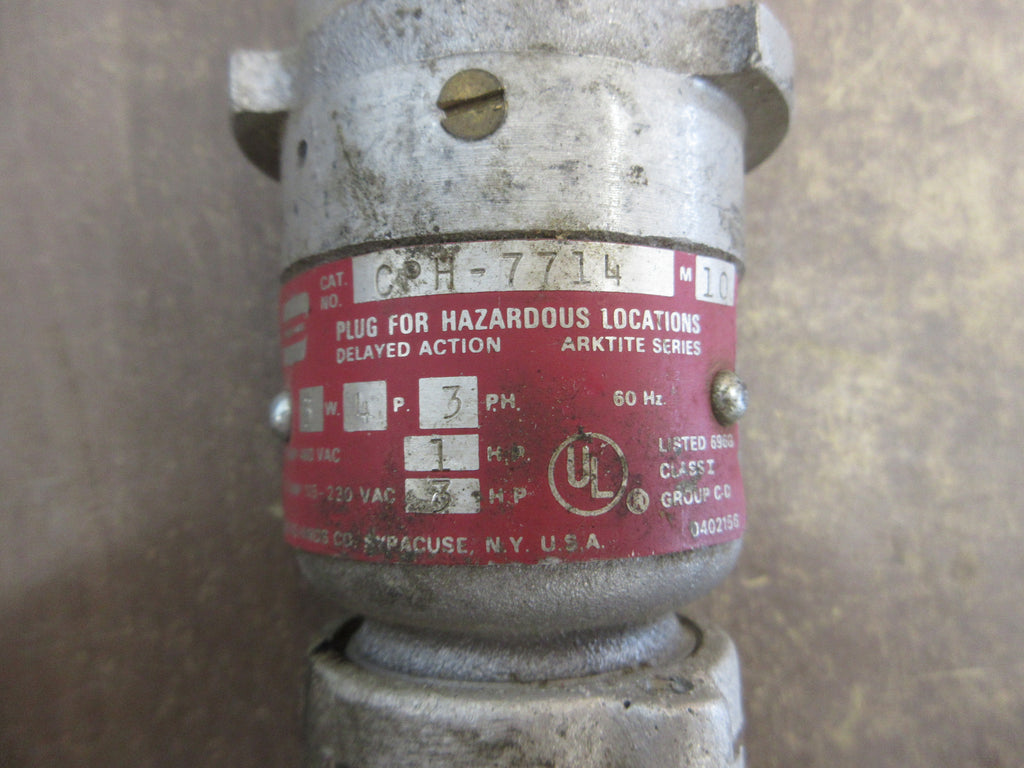 Crouse-Hinds Plug Part #: CPH7714 7/30 A 460/115-230 V 3W 4P 3Ph Used Loc: 58L3-22