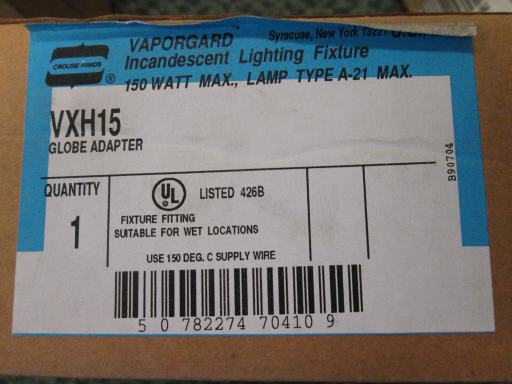Crouse-Hinds Vaporguard Lighting Fixtures Part # VXH15 150W Lamp Type A-21 New SurplusLOC: 15B5-22- Part # VXH15