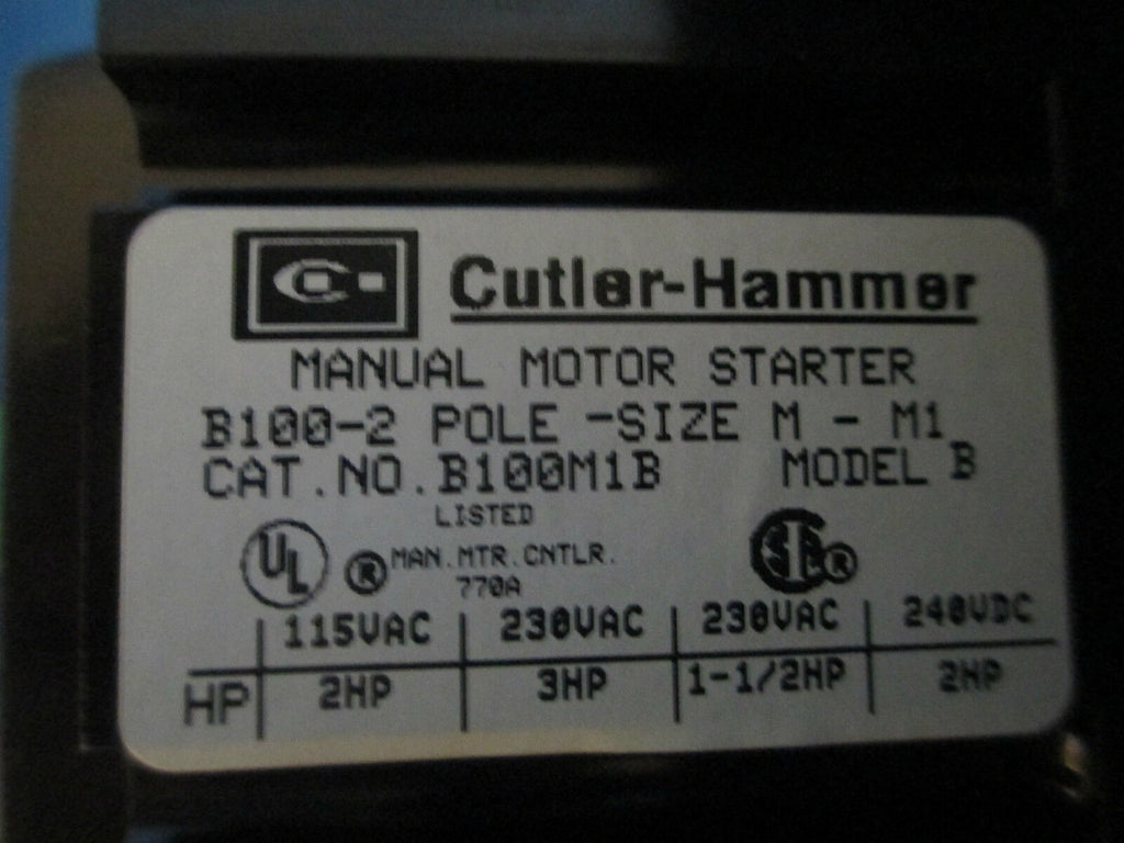 Cutler-Hammer AC Manual Starter B100S1B Size M-1 1PH New Surplus