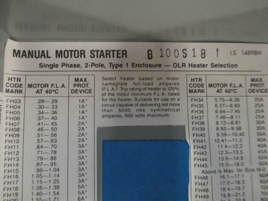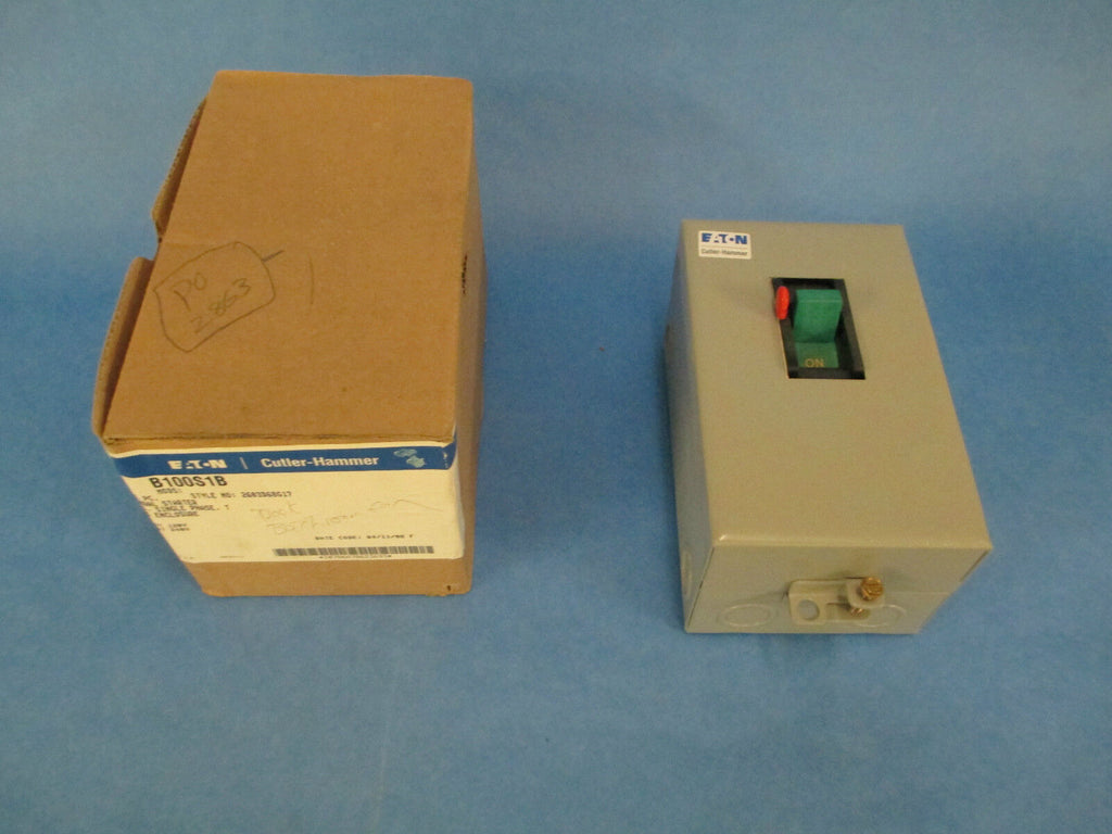 Cutler-Hammer AC Manual Starter B100S1B Size M-1 1PH New Surplus_x000D_ Condition: New – Open boxBrand: Cutler-HammerModel: Nema M-1MPN: B100S1BCountry of Manufacture: United States Cutler-Hammer AC Manual Starter B100S1B Size M-1 1PH New Surplus Cutler-Hammer AC Manual Starter Part # B100S1B Size M-1 1 Phase Nema 1 Enclosure New Surplus Loc 2A3-9 Cutler-Hammer AC Manual Starter Part # B100S1B Size M-1 1 Phase Nema 1 Enclosure New Surplus Loc 2A3-9