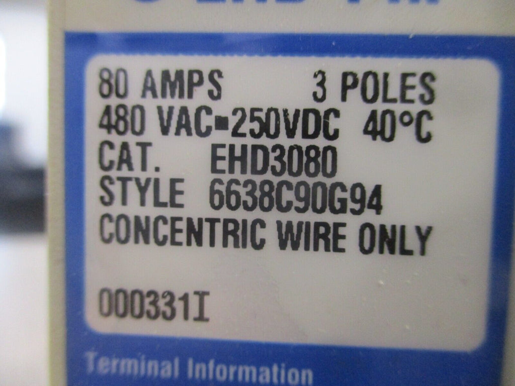 Cutler-Hammer Circuit Breaker EHD3080 Ser. C 80A 480V 3P New Surplus