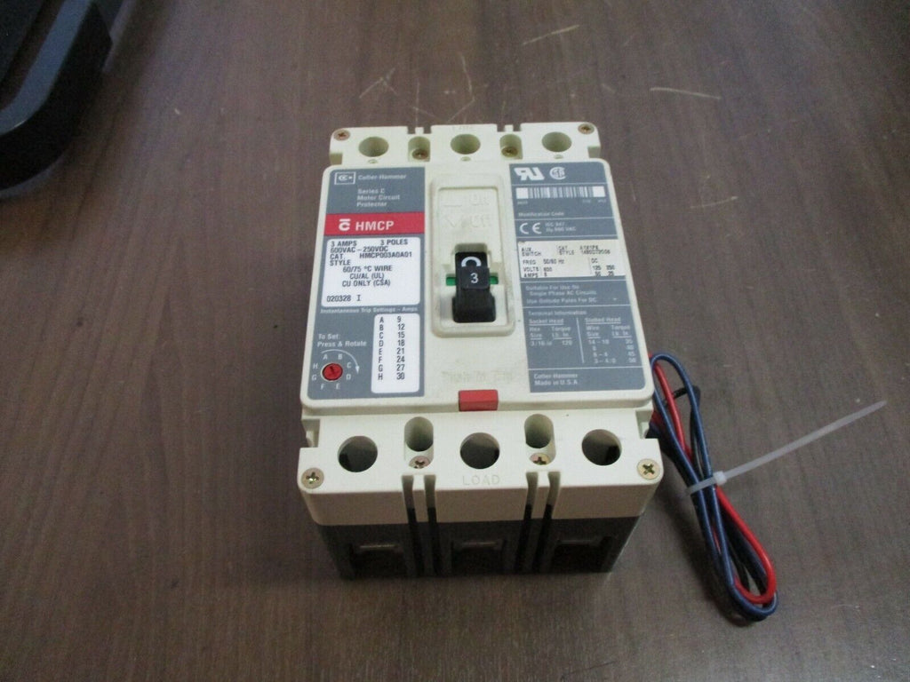 Cutler-Hammer Circuit Breaker w/ Aux HMCP003A0A01 3A 600V 3P Used