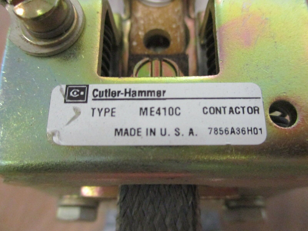Cutler-Hammer Contactor ME410C 125VDC Coil Used Condition: UsedMPN: ME410CBrand: Cutler-Hammer Cutler-Hammer Contactor ME410C 125VDC Coil Used Cutler-Hammer ContactorPart #: ME410C 125VDC Coil UsedLOC 17A3-34 Cutler-Hammer Contactor Part #: ME410C 125VDC Coil Uséd LOC 17A3-34
