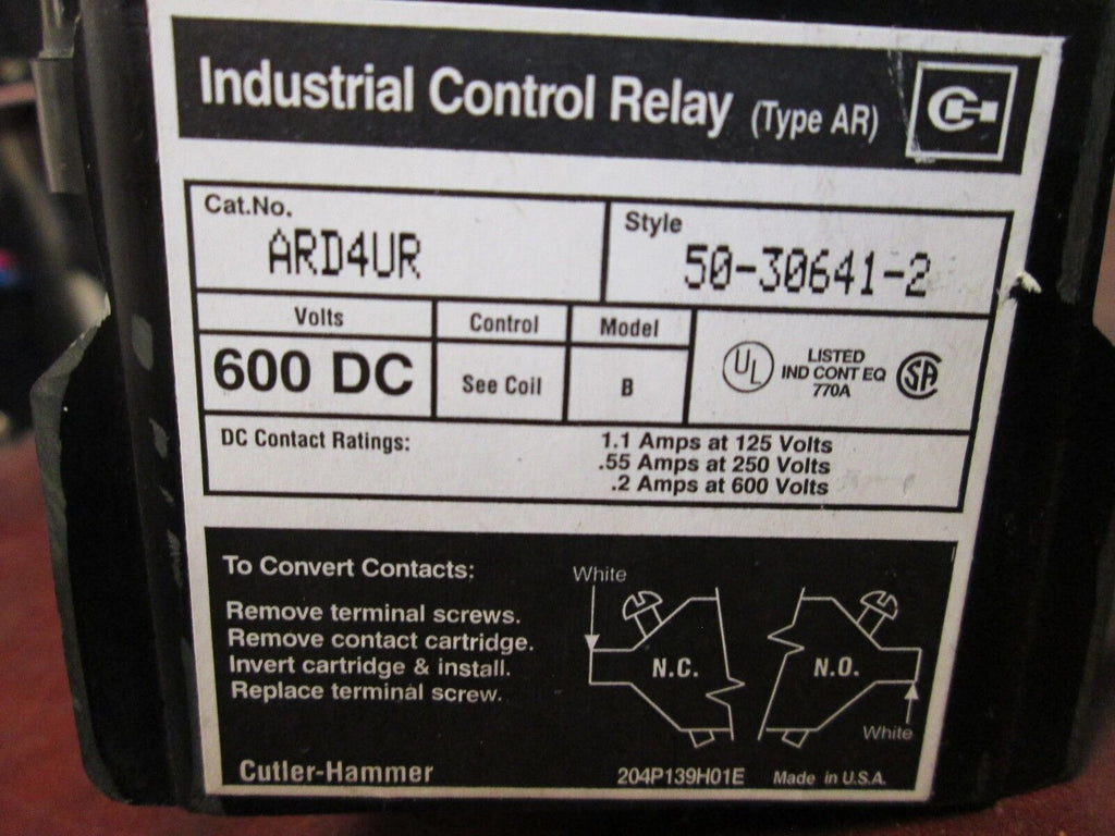 Cutler-Hammer Control Relay ARD4UR 130VDC Coil 600V Relay Used...
