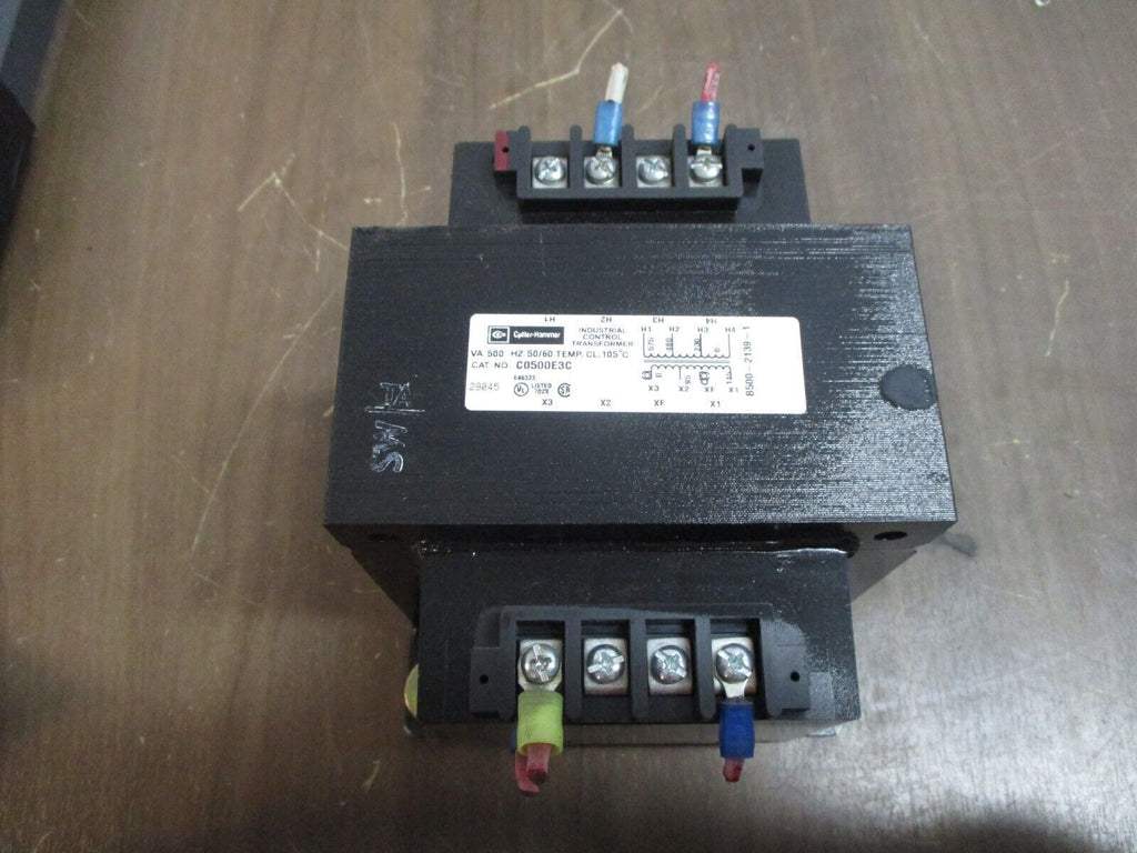 Cutler-Hammer Control Transformer C0500E3C 500VA Pri: 230/460/575V Sec: 95/115V Condition: UsedBrand: Culter-HammerPower Rating: 500 VAPrimary Voltage Rating (AC): 230/460/575 VType: Industrial Control TransformerMinimum Operating Frequency: 50 HzSecondary Voltage Rating (AC): 95/115 VMaximum Operating Frequency: 60 HzMPN: C0500E3C Cutler-Hammer Control Transformer C0500E3C 500VA Pri: 230/460/575V Sec: 95/115V Cutler-Hammer Control Transformer Part #: C0500E3C 500 VA Pri: 230/460/575 V Sec: 95/115 V 50/60 Hz Used Loc: AB11-4744 / AB2D2 Cutler-Hammer Control Transformer Part #: C0500E3C 500 VA Pri: 230/460/575 V Sec: 95/115 V 50/60 Hz Uséd Loc: AB11-4744 / AB2D2